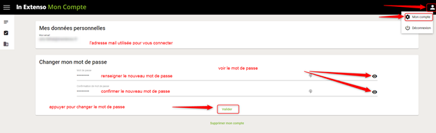 Pour modifier votre mot de passe, une fois dans votre espace « Mon compte », réaliser la procédure de changement de mot de passe :