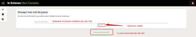 Etape 3 : renseignez le code de confirmation qui vous a été envoyé par mail :