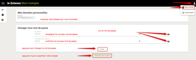 Pour supprimer votre compte cliquez sur le bouton « Supprimer mon compte » en bas de la page « Mes données personnelles » :